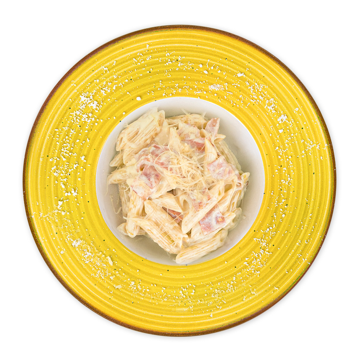 (penne, bacon, ou 1 buc, sos alb, Grana Duro)