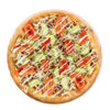 (aluat pizza, sos alb, mozzarela + topping pizza, piept de pui, rosii cherry, branza feta)