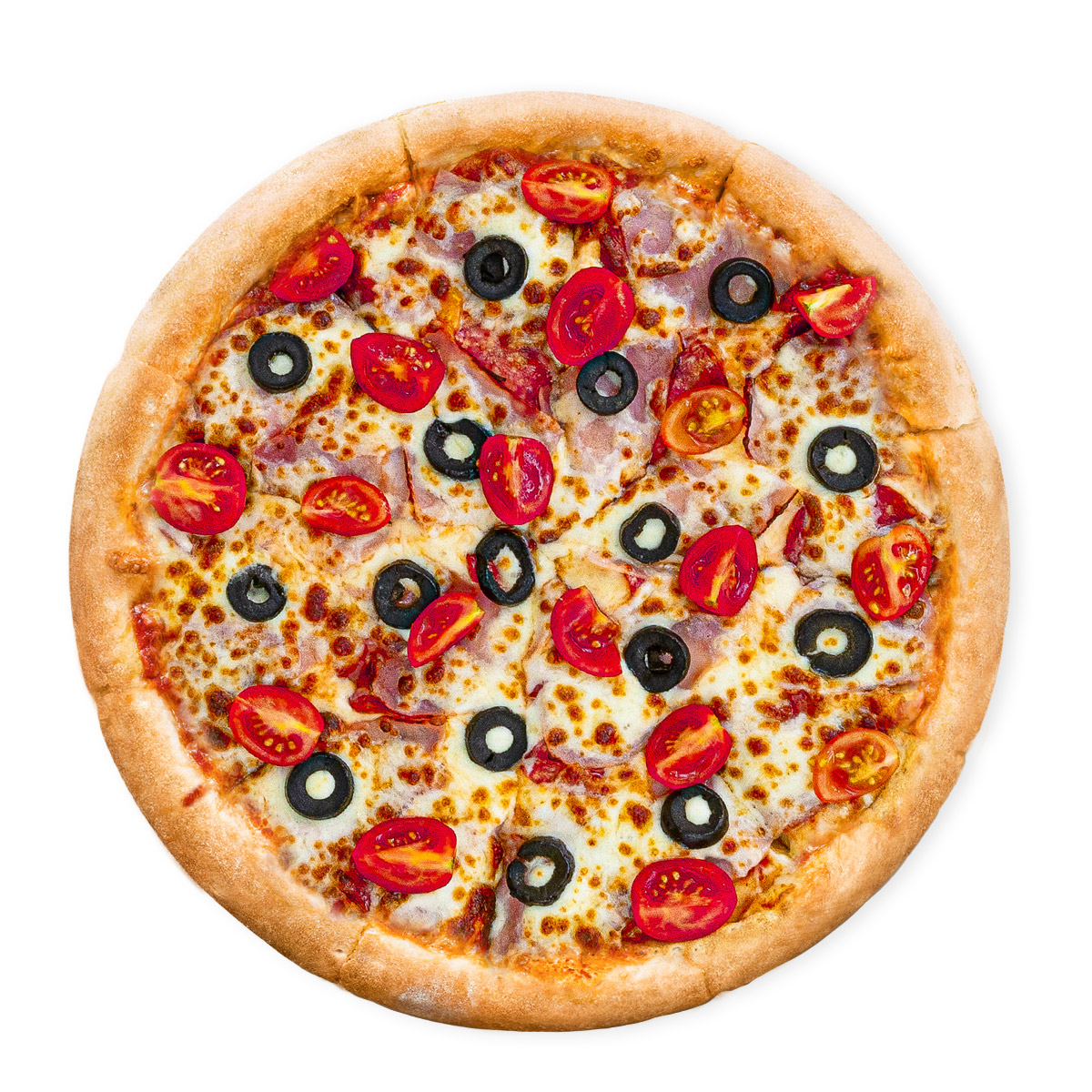 (blat, sos pizza, mozzarella, salam, sunca, rosii cherry, masline)