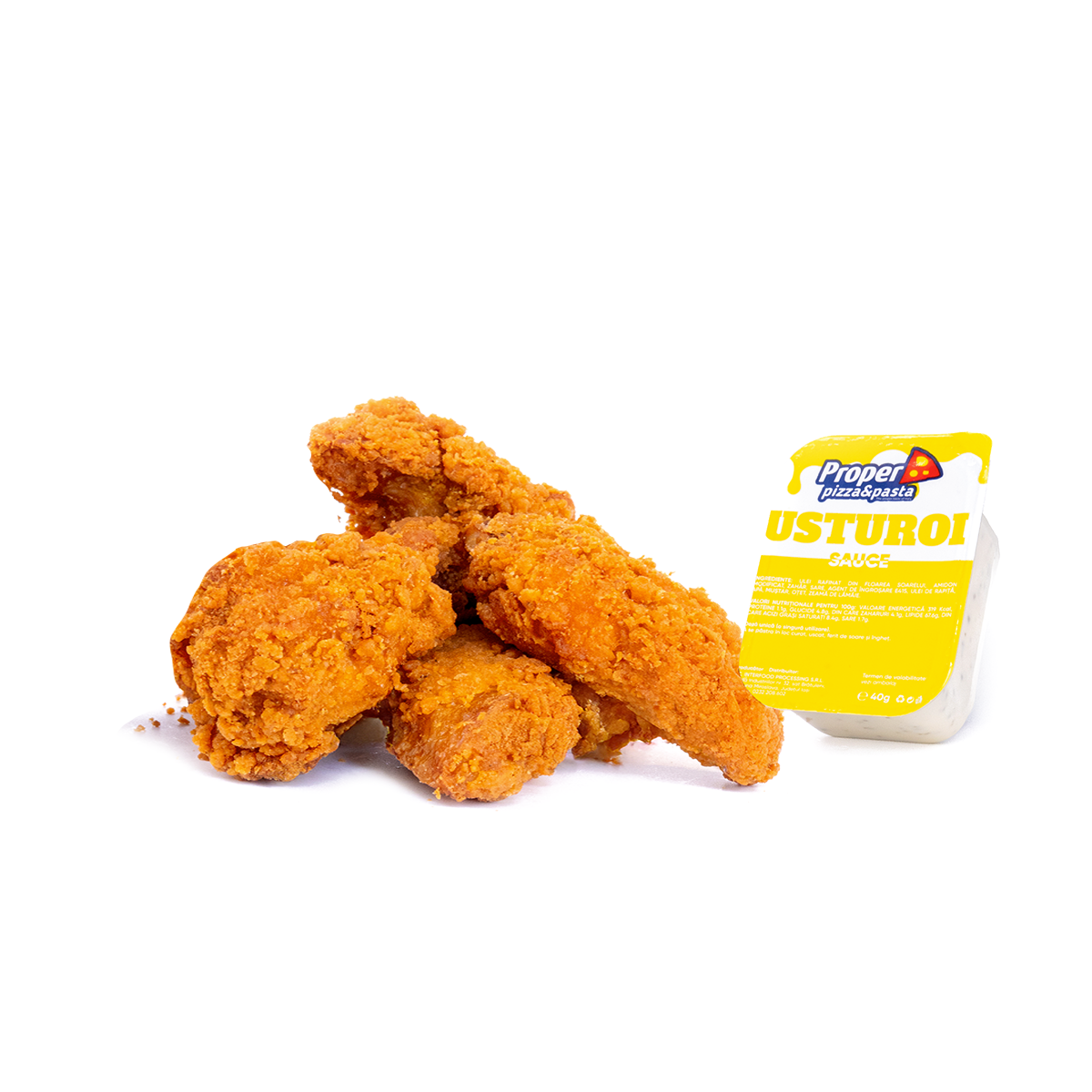 (blat, sos pizza, mozzarella, cartofi, bacon, piept de pui, masline)