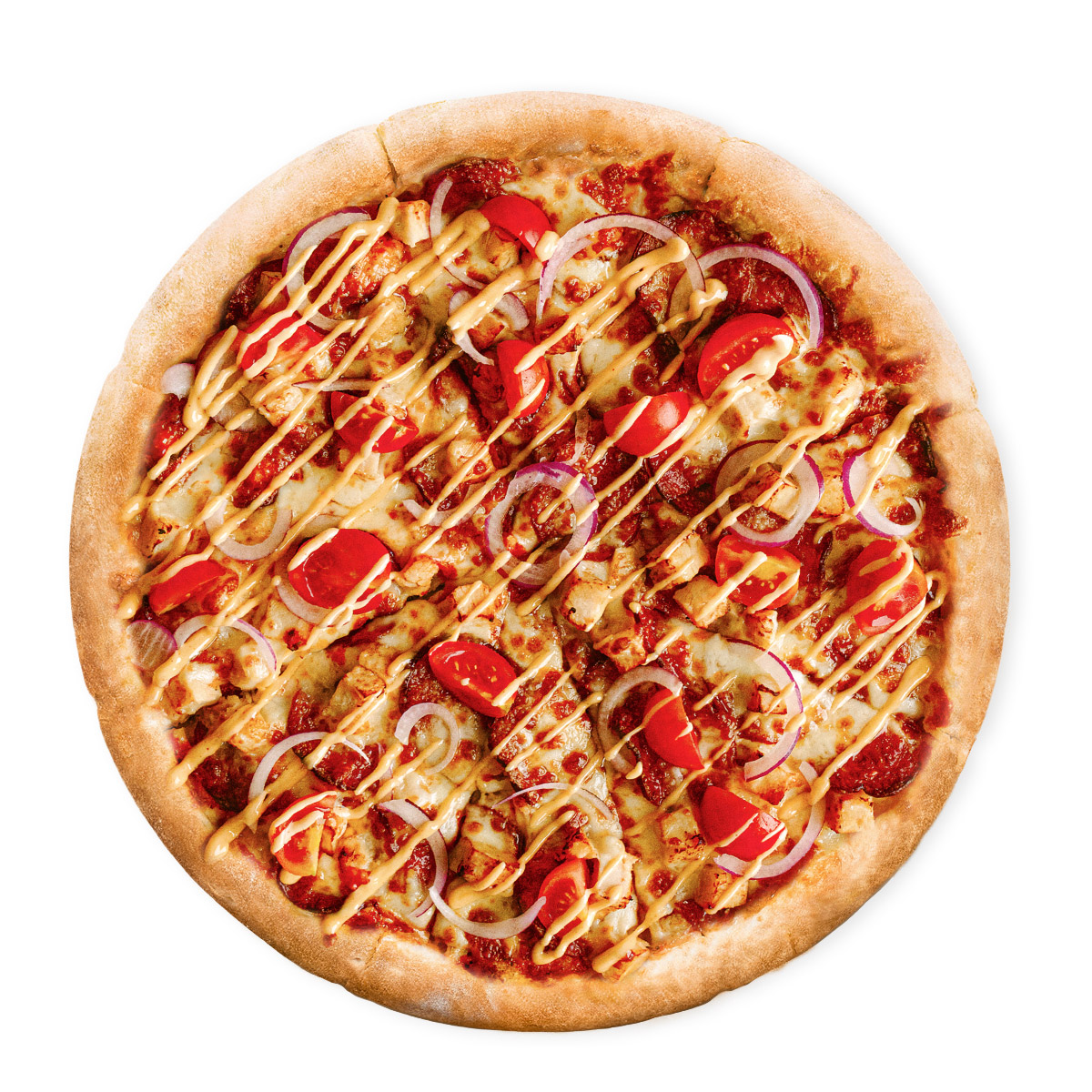 (blat, sos pizza, Mozzarella + Topping Pizza, sos Taco, Chorizo, Piept Pui, Ceapa, Rosii Cherry)