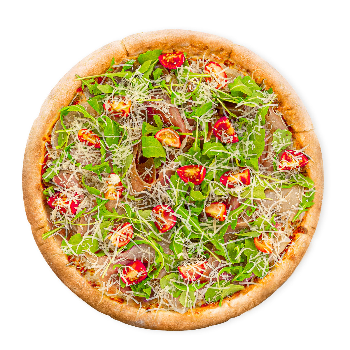 (blat, sos pizza, mozzarella, prosciutto, rucola, rosii cherry, parmezan)