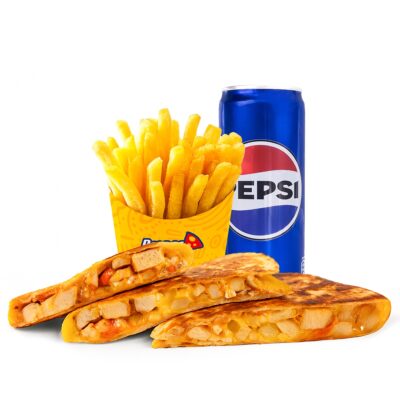 (snitel de pui, cartofi , servit cu sos de usturoi )